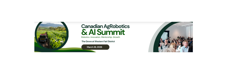 Join us for Canada’s premier event dedicated to advancing agricultural technology through robotics and artificial intelligence. This one-day summit brings together farmers, agtech entrepreneurs, robotics engineers, investors, researchers, and industry leaders to explore how automation and artificial intelligence are impacting food and farming.